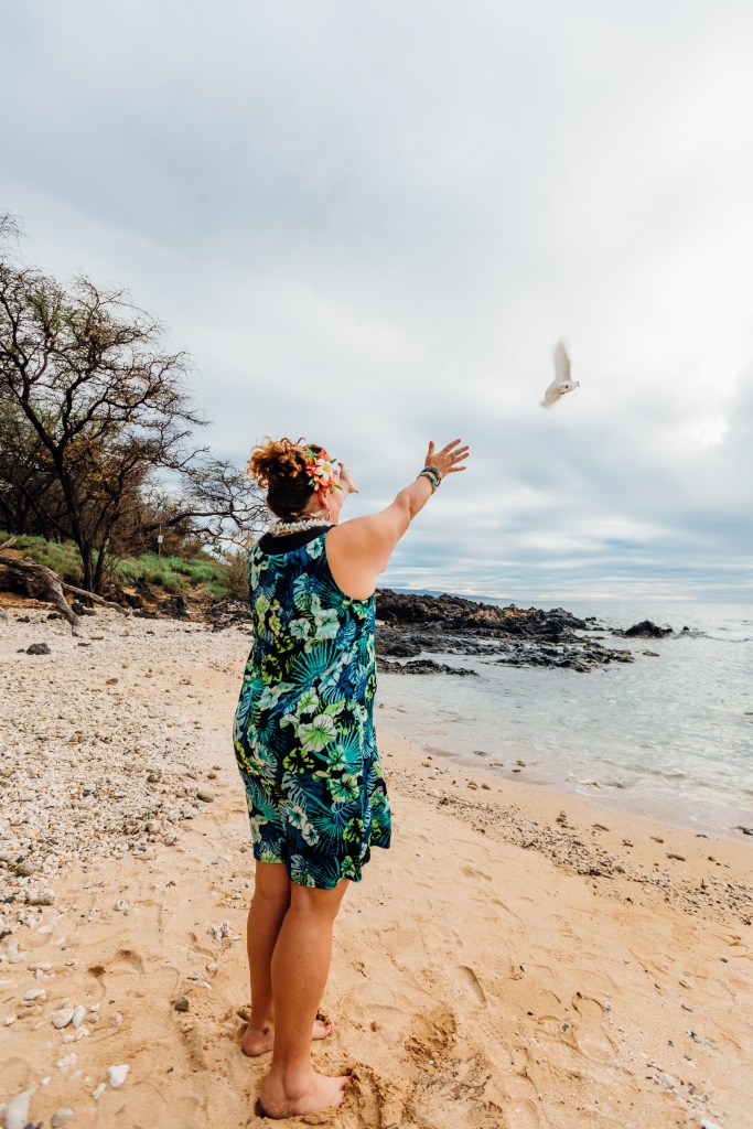 Located along the walking trail just south of the grassy area of Kamaole III Beach Park (aka Kam III) there are 3 overlook spots that are lovely for weddings at any time of day. These areas have a lovely view of the ocean and tend to be low on foot traffic. Several of the overlooks have benches and all have unobstructed views of the ocean and sunset. Not much chance of a Frisbee flying over or even swimmers in the background. Parking, beach showers, bathrooms are available but the location is best for people who are comfortable with a 5-7 min walk on a dirt trail.